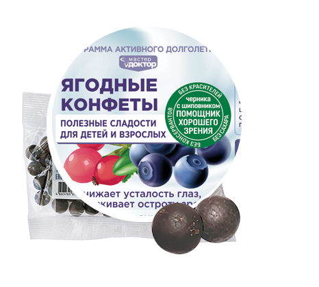 Ягодные конфеты Черника с шиповником - 100% натуральный вкусный и полезный продукт здорового питания. Богатейший источник витаминов С, К, Е, В, РР, Н и минералов Si, K, Mg, Ca, Mn, I, Co, Mo, Fe, S, Zn, Cr, Se.